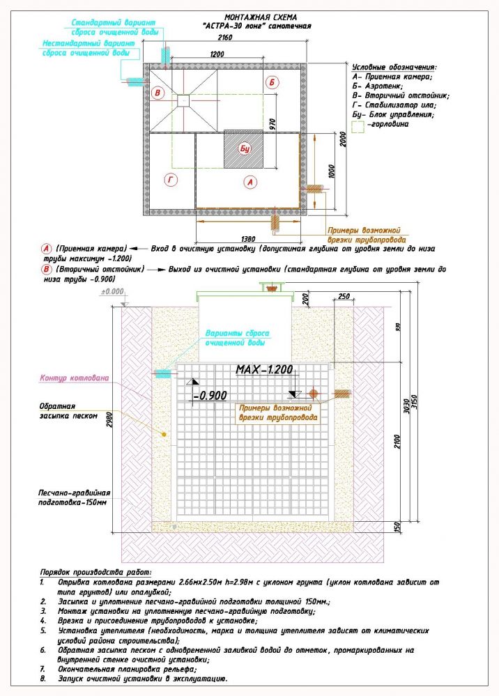 Если сравнивать с септиками, то для модели Астра 30 Long не требуется создание поля для фильтрации. Установка характеризуется более высоким уровнем очистки – около 98% грязи расщепляется или остаётся в резервуарах. Основным преимуществом септика Астра 30 Long является отсутствие надобности заказывать услугу выкачивания отходов ассенизатором. Монтаж достаточно сложный и поэтому требуется заказывать сервис у профессионалов.